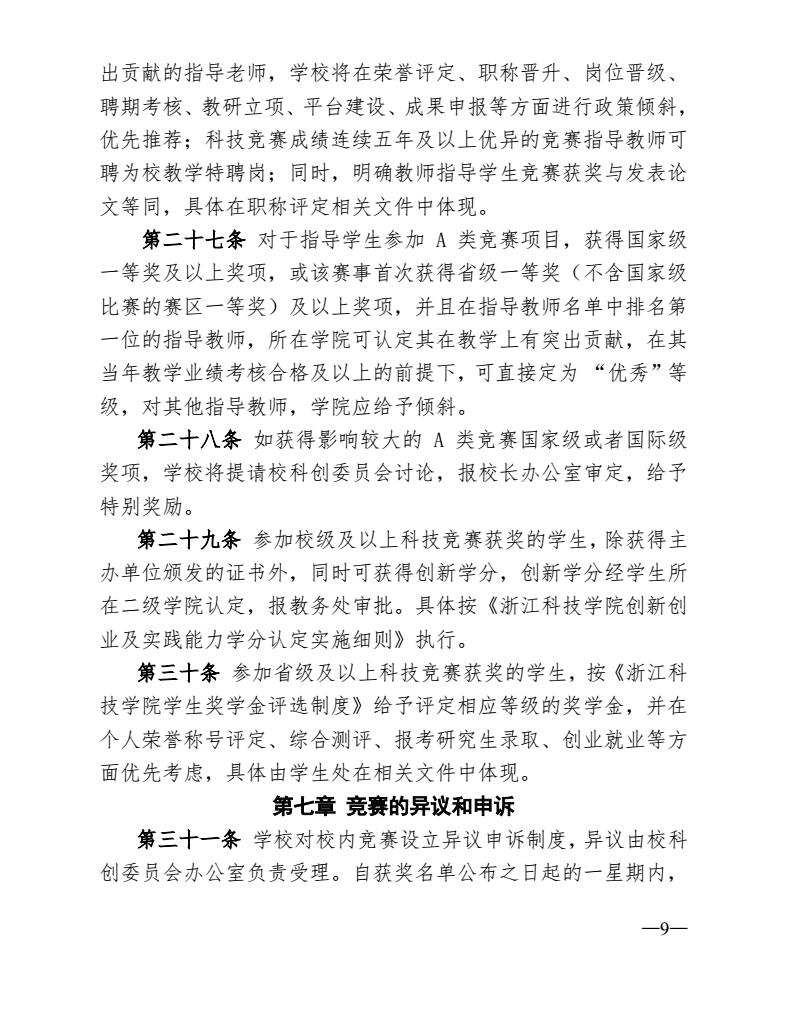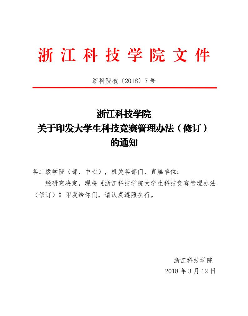 浙江科技91麻豆 关于印发大学生科技竞赛管理办法(修订)的通知20180312