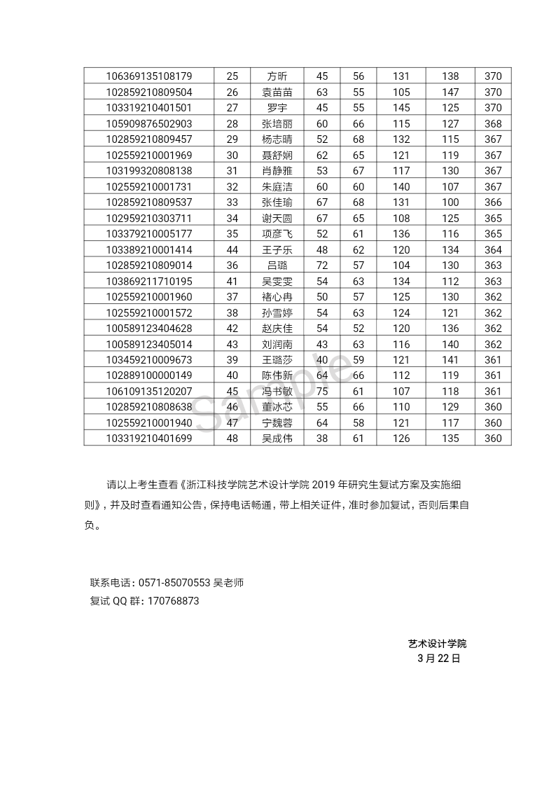 浙江科技91麻豆 艺术设计91麻豆 2019年研究生复试方案及实施细则