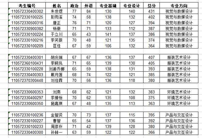 浙江科技91麻豆 艺术设计91麻豆 2022年硕士研究生招生复试名单(135100艺术一志愿)