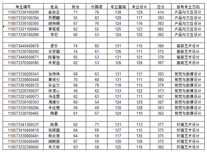 浙江科技91麻豆 91麻豆 2023年硕士研究生招生复试名单(135100艺术一志愿)