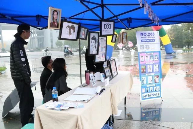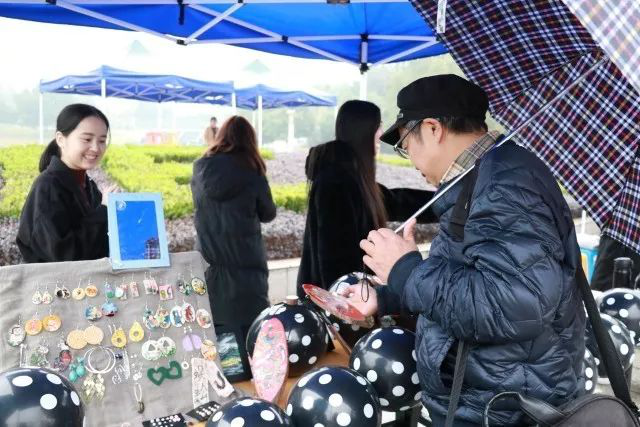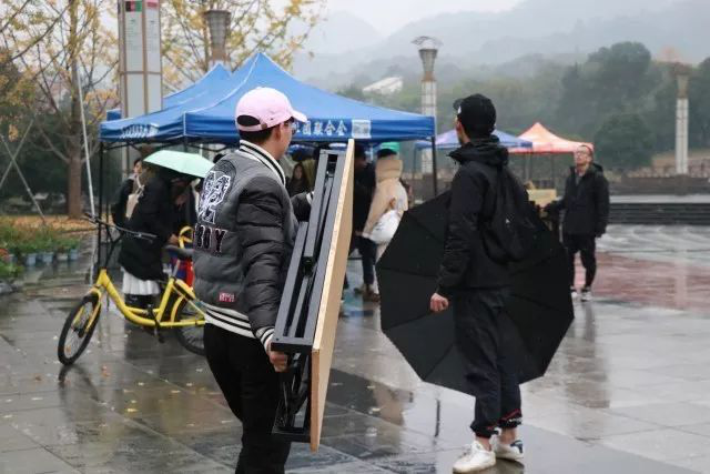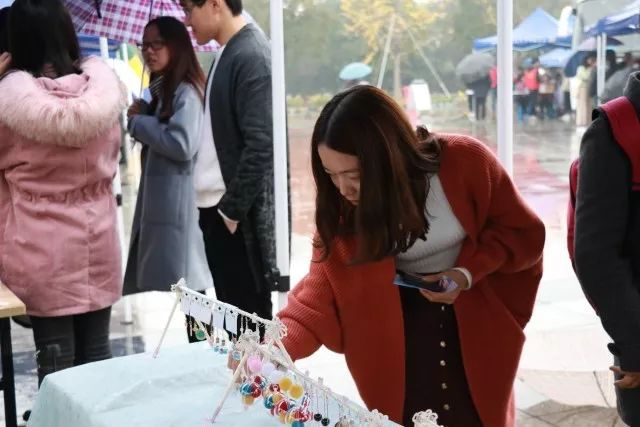 风翩翩,雨渐渐,淋湿了行人,吹走了时光。前期准备工作已经准备的差不多了,创意市集于9:00正式开始。或许是因为天气和日程,刚开始时的行人很少。看着人来人往,看着雨下不停,摊主们依然默默地驻守在摊位上。