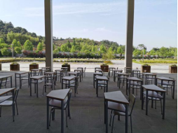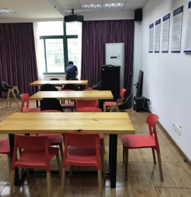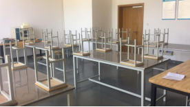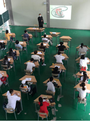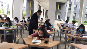 后勤借用了一批课桌,利用起来室外空旷的走廊,解决实验室空间不足问题,保证实验场所的防疫安全性。