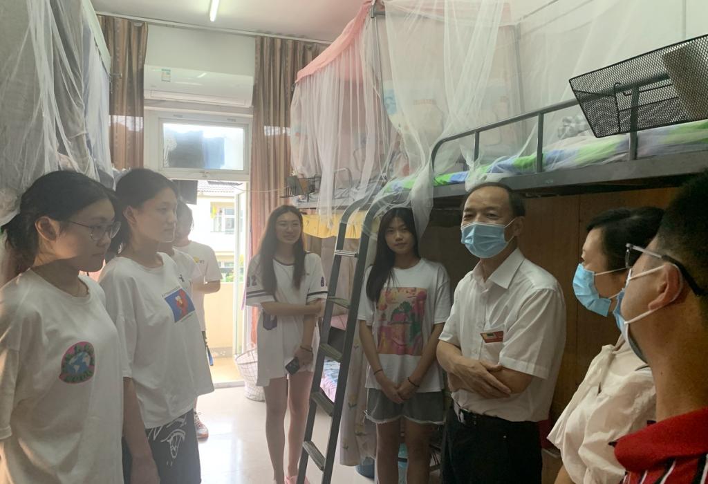 开学前一天,校党委副书记周加敏,学工部部长杨志祥,副部长王登科来到西和公寓,了解学生报到情况,慰问全体工作人员及志愿者。在表演系学生寝室,周书记详细询问了学生的生活情况,并给即将过生日的学生送上真挚的祝福和温馨的生日礼物。周书记勉励同学要勤奋学习,追逐梦想,展现艺术学子的风采,并叮嘱大家做好各项疫情防护工作。