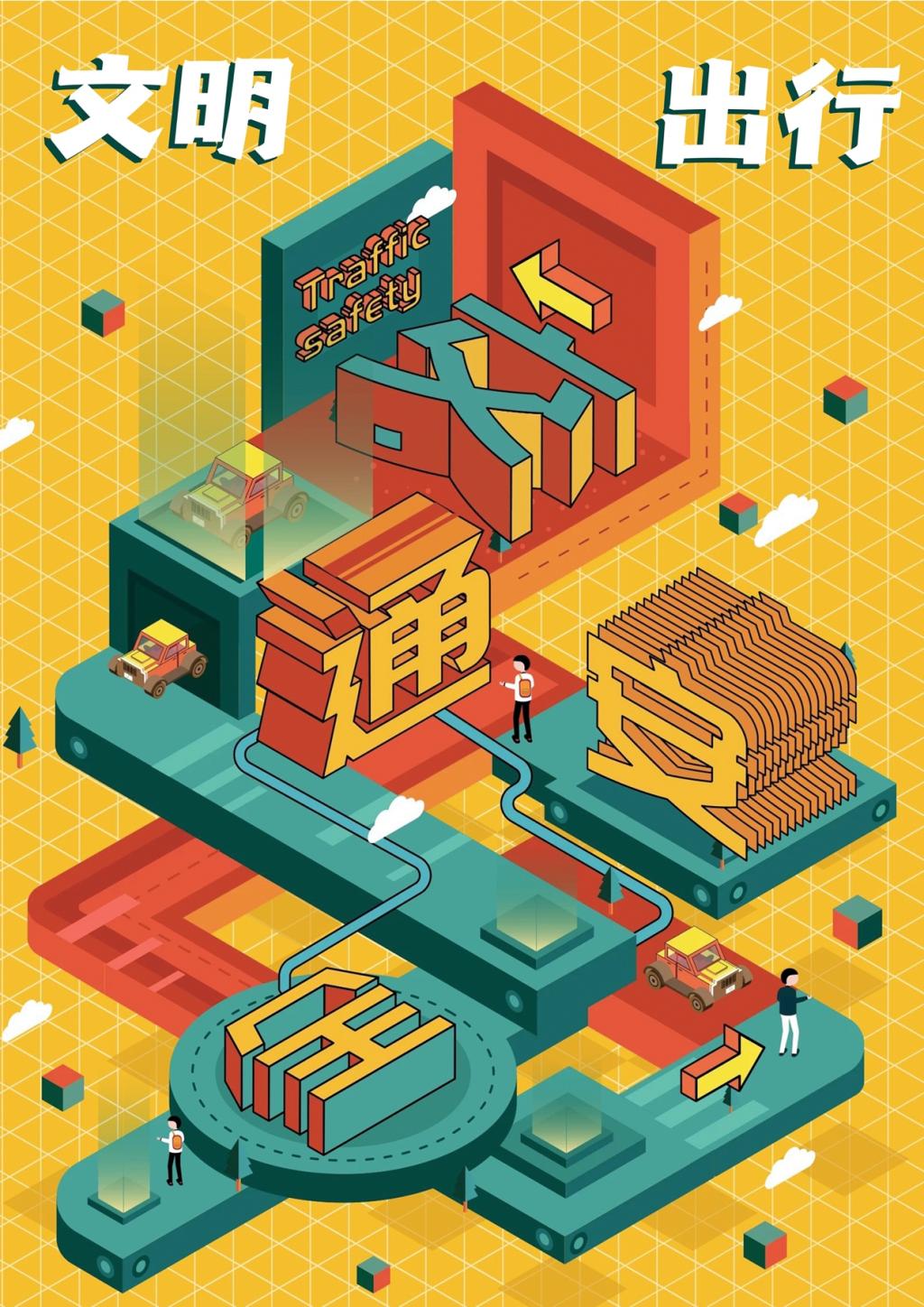 积极践行会议精神,并以此为契机,在校保卫处的指导下举办“绘交通安全,诺文明出行”交通安全海报设计大赛。