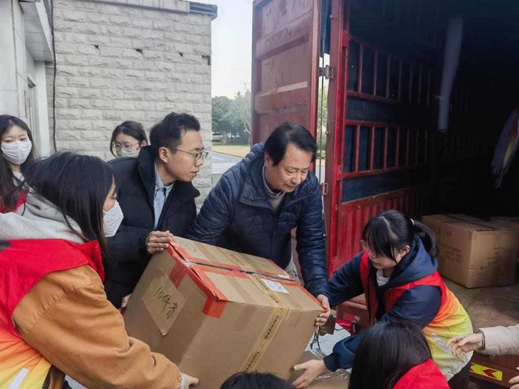 党委书记詹俊、院长郑林欣、服工系负责人以及学生志愿者齐心协力,共同将这批爱心冬衣冬袜装载上发往新疆阿克苏的货车。这是继上一次援疆行动后的再次协力,预计五天后,这批承载着浙江企业爱意与善心的冬衣冬袜将运抵新疆阿克苏,为当地的学生和村民送去温暖和关爱。
