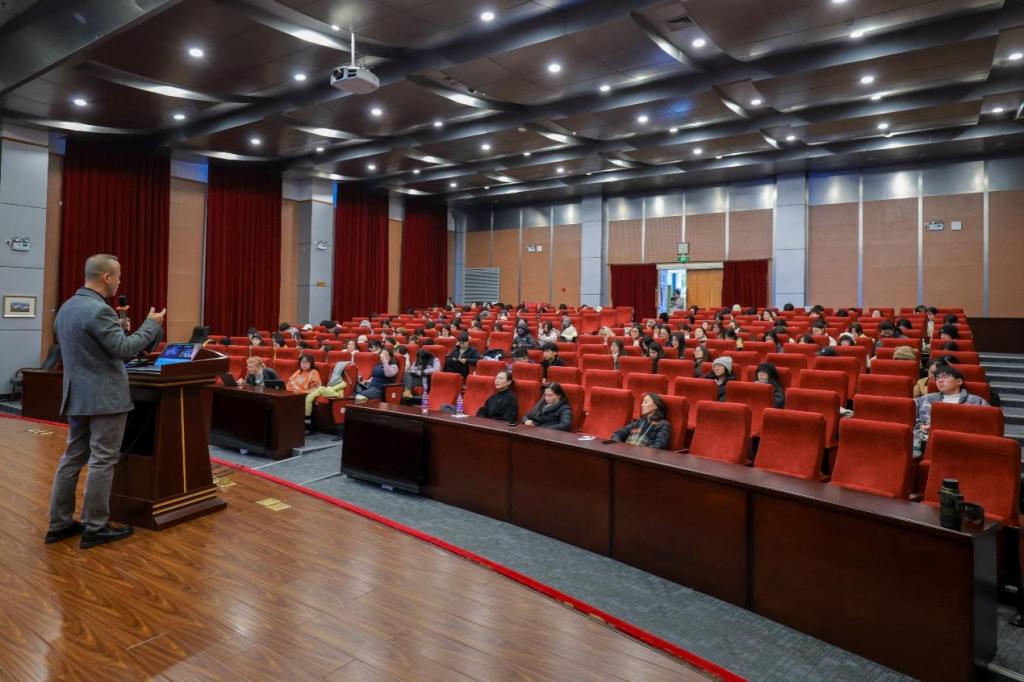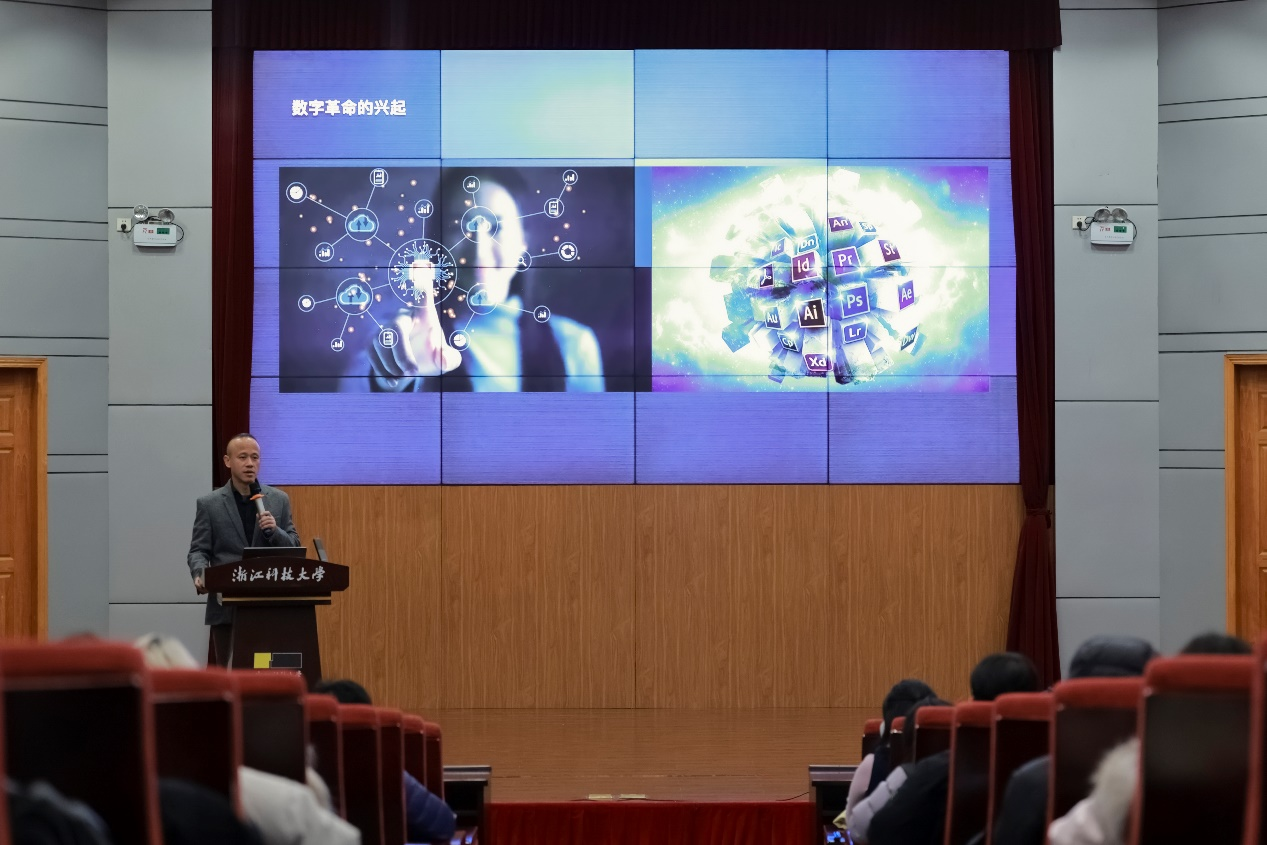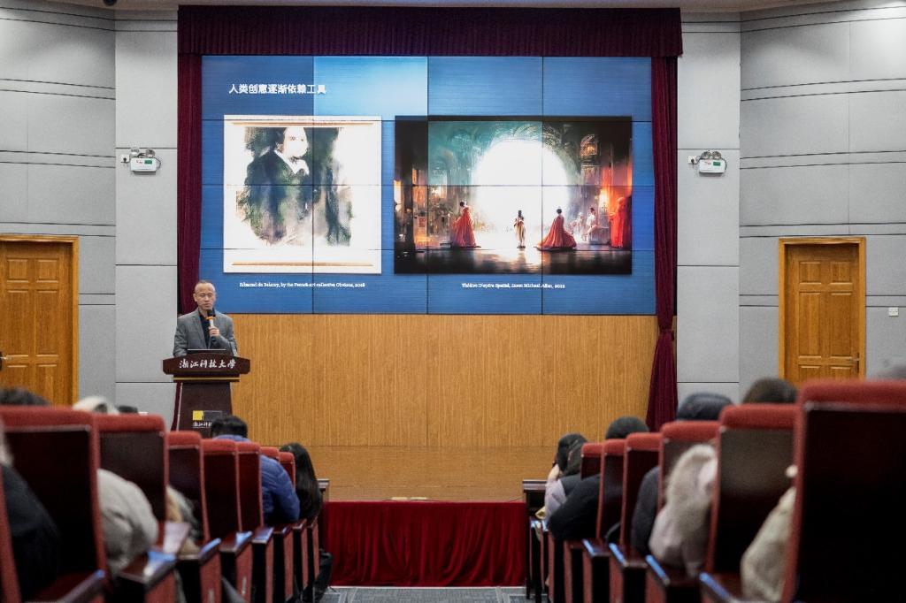 教授、博士研究生、硕士研究生导师龚嘉伟教授作为主讲人,本次讲座旨在探讨科技时代如何影响艺术和设计的创意表达。讲座从历史、当前发展到未来方向,全面分析科技与创意的关系。校内外专业教师及研究生、本科生合计一百余人到场聆听。